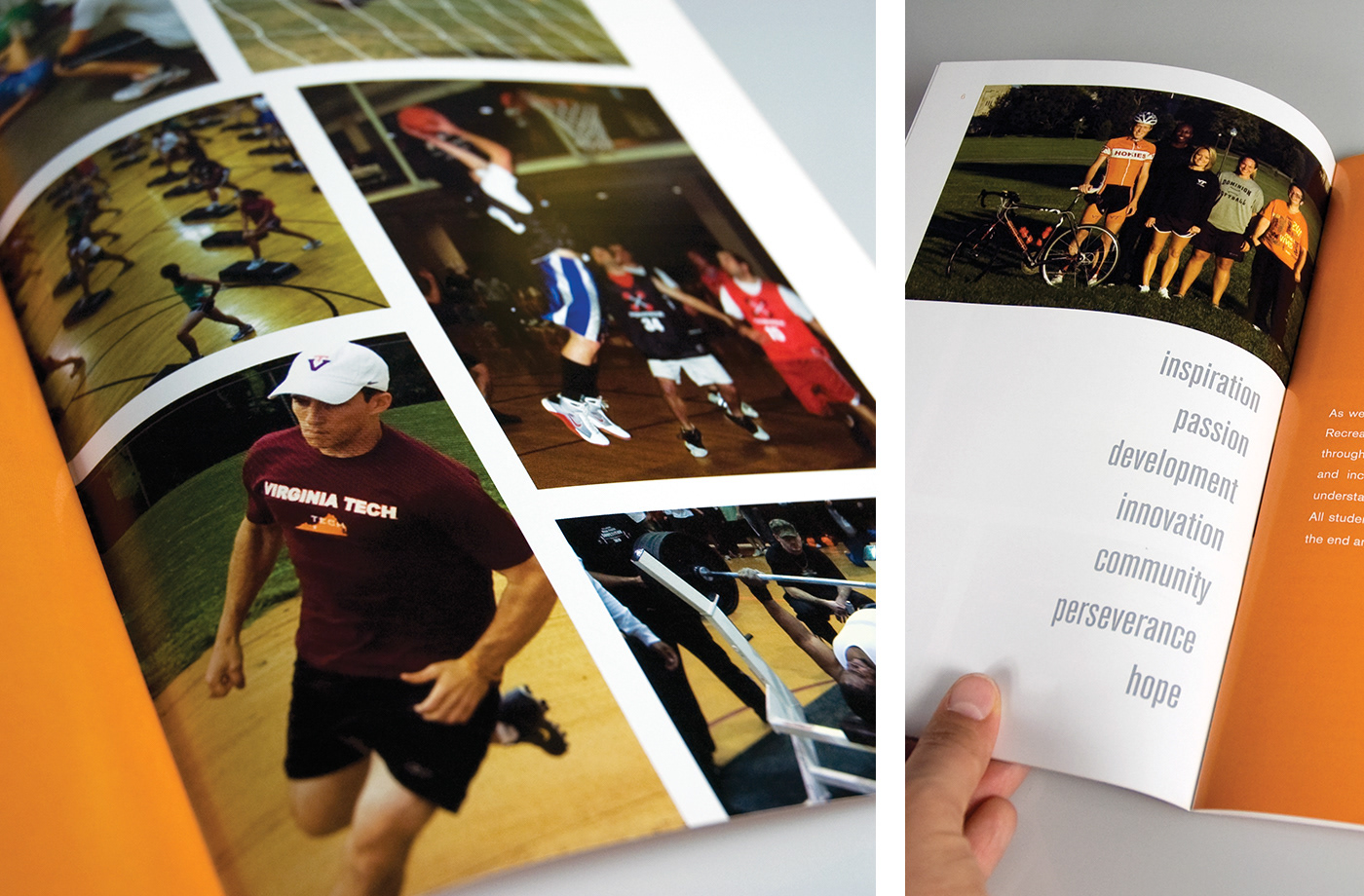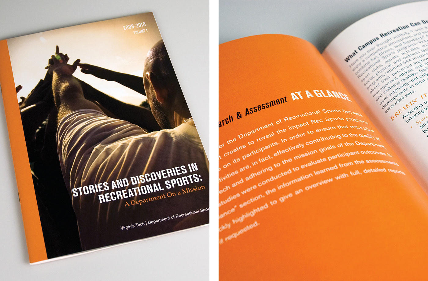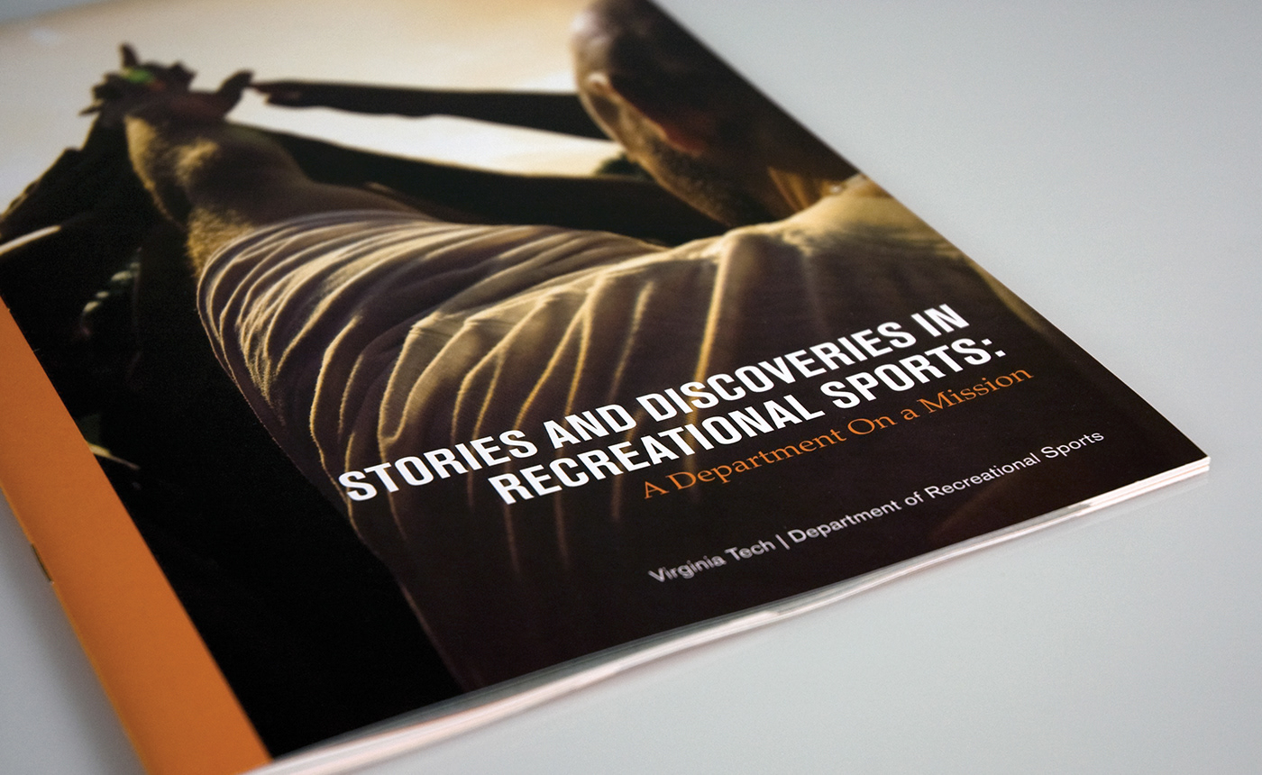 Publication designed for the Department of Recreational Sports at Virginia Tech to highlight achievements and accomplishments during the 2009–2010 school year. All original photography.