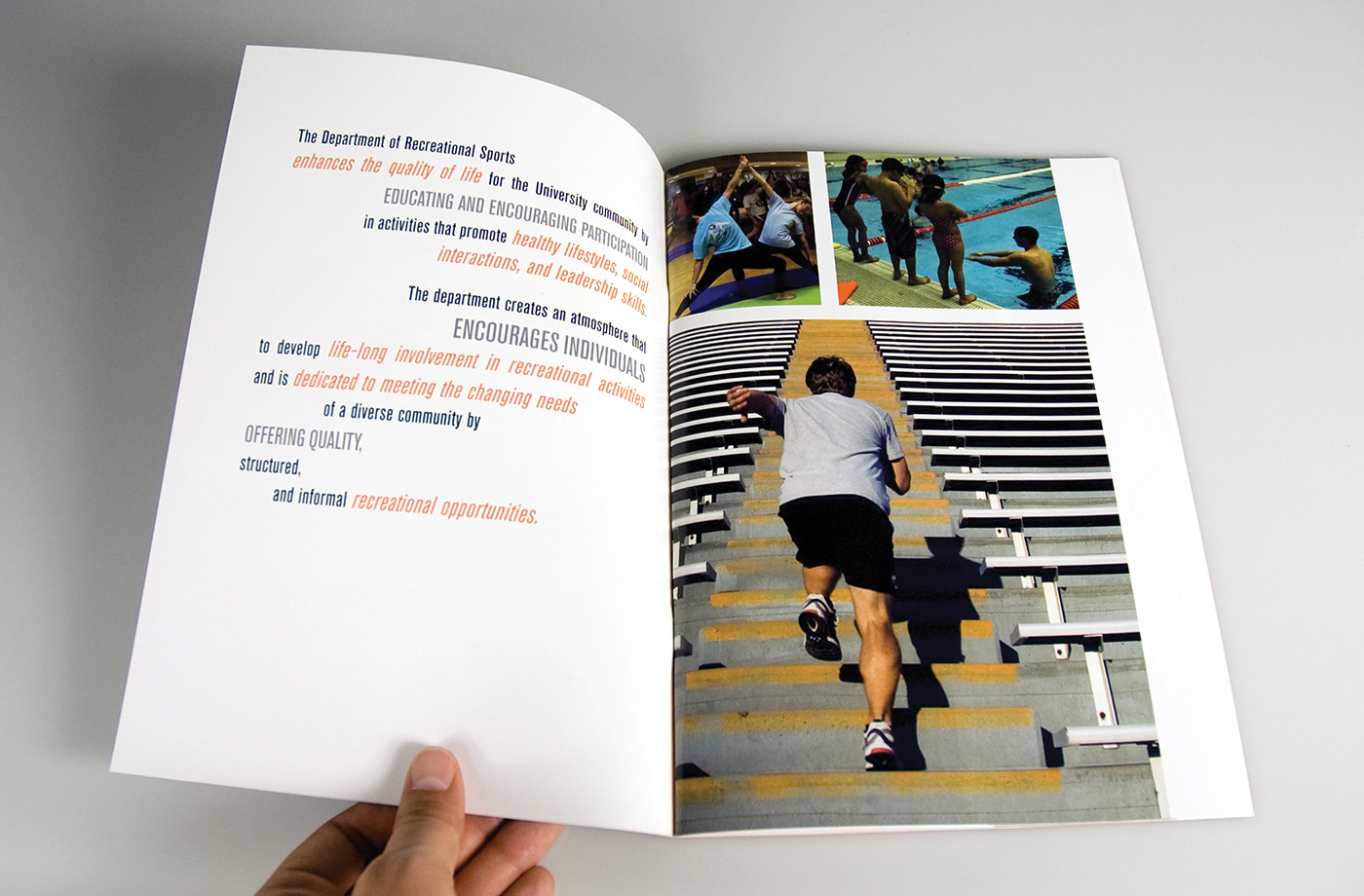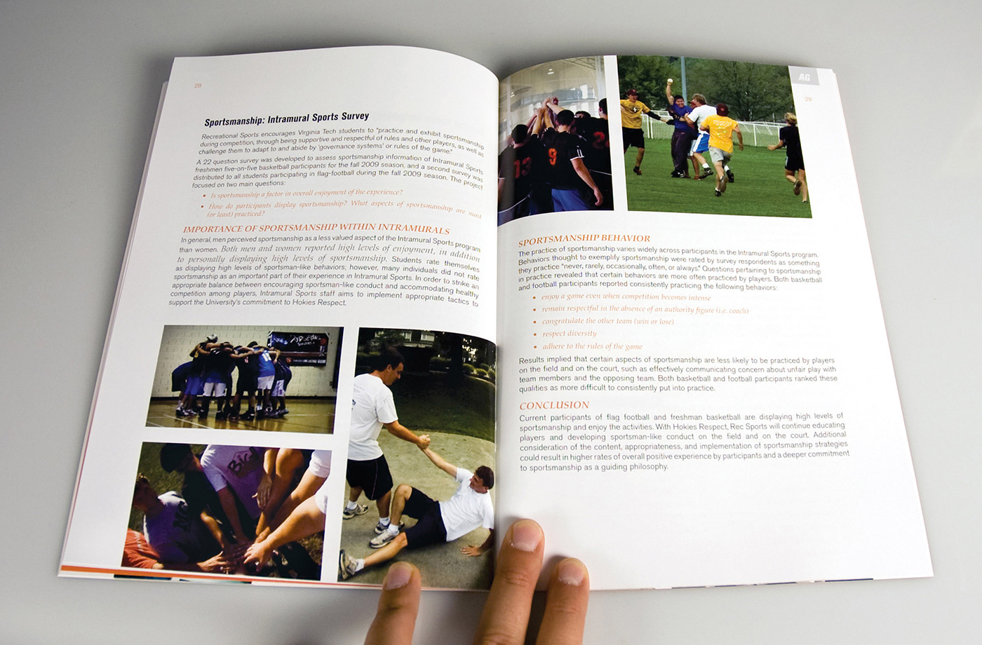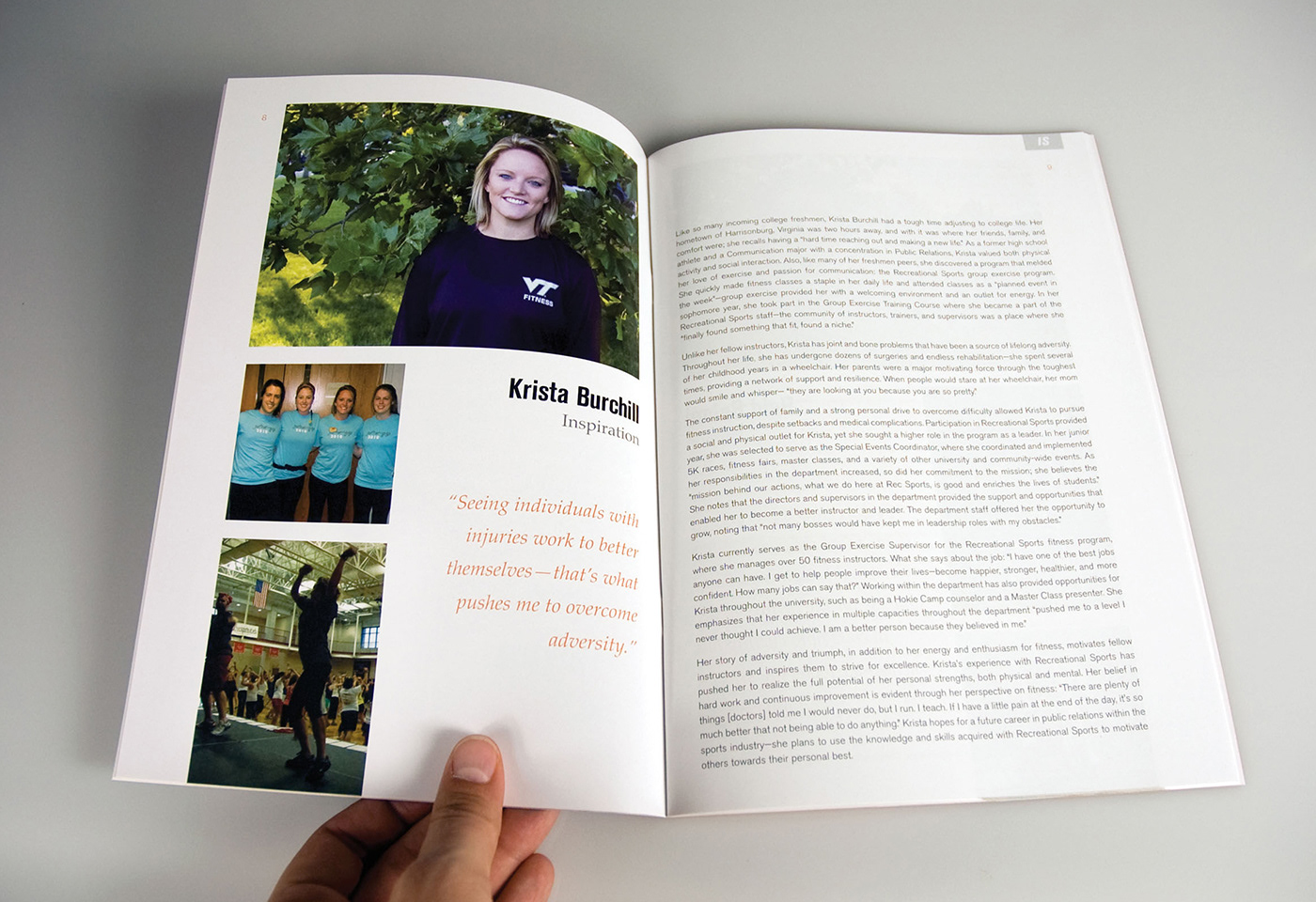 Publication designed for the Department of Recreational Sports at Virginia Tech to highlight achievements and accomplishments during the 2009–2010 school year. All original photography.